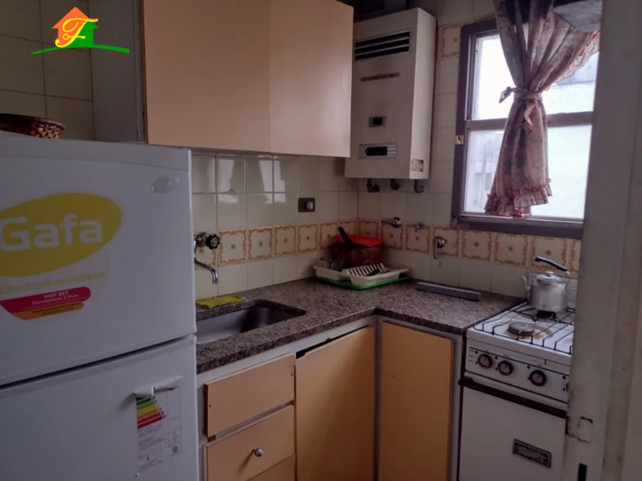 Se ofrece a la venta departamento de un ambiente en excelente ubicación ,a metros de la catedral de Mar del Plata y shopping Los Gallegos. Al entrar al departamento nos encontramos con un pasillo y amplio Placard,a la izquierda está el baño completo con bañera y saliendo de este al lado tenemos la cocina separada del comedor.Al otro lado nos encontramos con un amplio comedor y muy luminoso. El departamento se vende amoblado sin heladera.